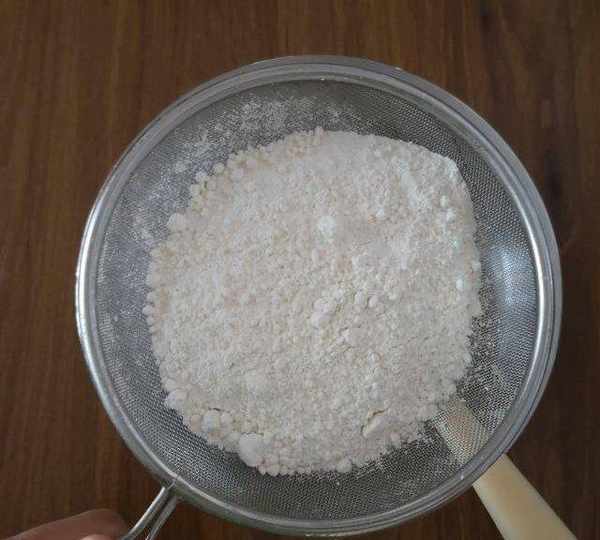 第5步、將面粉過篩到盆中,再攪拌均勻。攪拌的時候不要劃圈攪拌,面粉會起筋的。