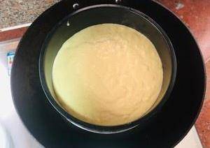 發酵到這樣大概是模具的八成。原來的面糊的1.5倍大。發酵不夠蒸出來的蛋糕中間會塌陷