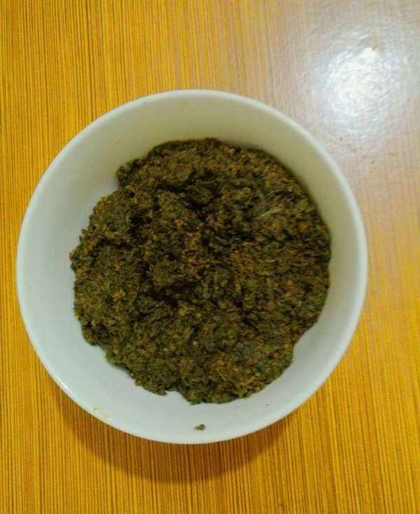 小時候在老傢是用竹插箕(一種竹制品)把煮好的艾草搓爛,除去比較硬的艾梗,把搓出來的汁液煮開來搓米粉。現在住在城裡,沒有竹插箕,我把艾草煮過,撈起來先用刀剁碎,然後用刀背槌爛。有條件的也可以用其他工具把它搗爛。
