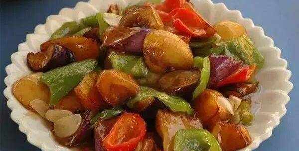 說完瞭湯,我們便來論論養身菜。這一道地三鮮,相信許多人都聽過,但不知道是不是許多人也會做。首先便是將準備的茄子和土豆削皮並洗凈後,切成塊狀;青椒為瞭美觀也需要掰成小塊來。在鍋裡放入油,等其七成熱後便將土豆放入並炸成金黃色撈出;將茄子放入鍋內也炸成金黃色,緊接著放入青椒一同撈起。將蔥花爆炒並放入蒜蓉後,再將土豆、青椒與茄子一同放入翻炒,這道菜便在放入水生粉收汁後就可以出鍋瞭。