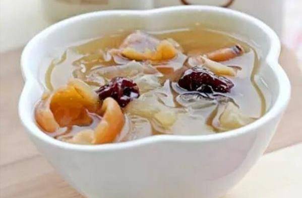 這個湯在材料上並不費力,做起來也是十分的簡單,所需要準備的也隻有銀耳、紅棗、桂圓和冰糖而已。在做的時候,首先需要用清水將銀耳進行沖洗幹凈,再將銀耳的蒂部去除幹凈後撕成小朵。紅棗與桂圓也需要用清水清洗幹凈並在瀝幹水分後,與銀耳一起放入高壓鍋內。加入適量的清水後,便蓋好鍋蓋,用大火上汽後再改用小火慢煮20分鐘左右,便可以盛出來與傢人一同享受瞭。