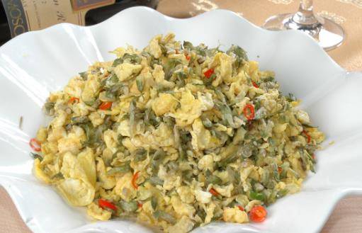 槐花炒雞蛋:槐花洗凈,放入開水鍋中焯一下。雞蛋打入大碗內,放入精鹽4克,味精攪散,把槐花瀝凈水後放入攪勻。炒鍋上火,放油燒熱,放入蔥花炸香,倒入槐花蛋液,炒至熟且塊狀後,出鍋裝盤,一道美食就做好啦,快來嘗試一下吧。