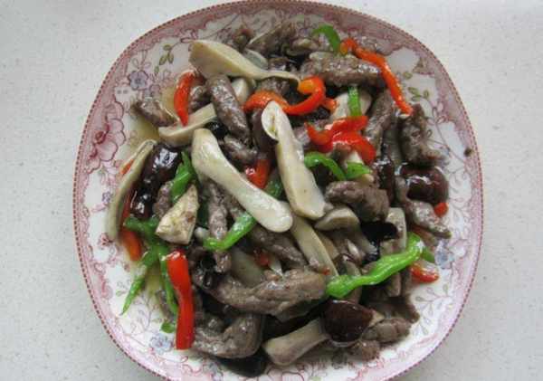 松茸炒牛柳:牛肉切條用料酒、鹽、淀粉、醬油拌均醃制20分鐘,松茸洗凈焯水切片,青紅椒少許切塊,熱鍋冷油滑炒牛柳,變色盛出,再起鍋熱油煸炒松茸片刻,放青紅椒、牛柳、鹽、糖、雞精調味即可,營養又美味。