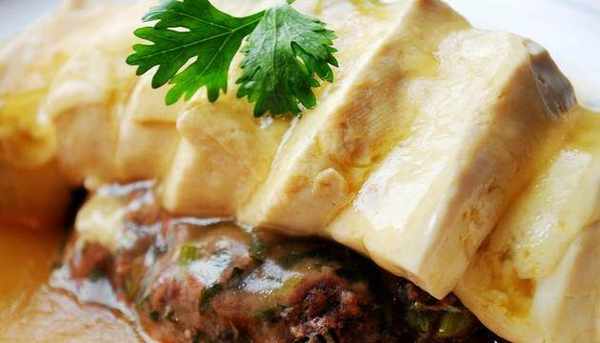 小橋流水豆腐:牛肉餡加點芹菜拌一下,切點豆腐在上面,放瞭兩層,是因為我想吃豆腐,豆腐上面灑瞭一層雞汁,放鍋裡蒸瞭15分鐘後湯全部出來瞭,再把湯倒在鍋裡,勾芡之後,重新灑在菜上即可,是不是比你想象中簡單多瞭呢?