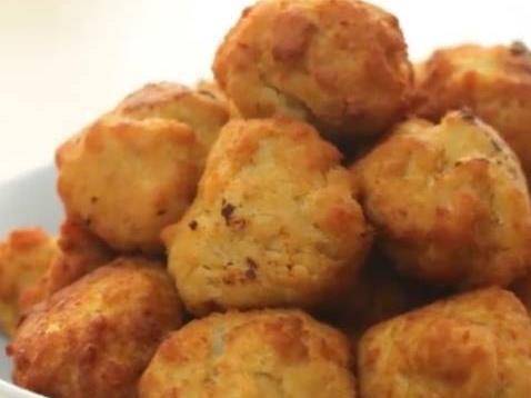 然後用手擠成圓球,下油鍋炸,油七成熱的時候,下生胚炸