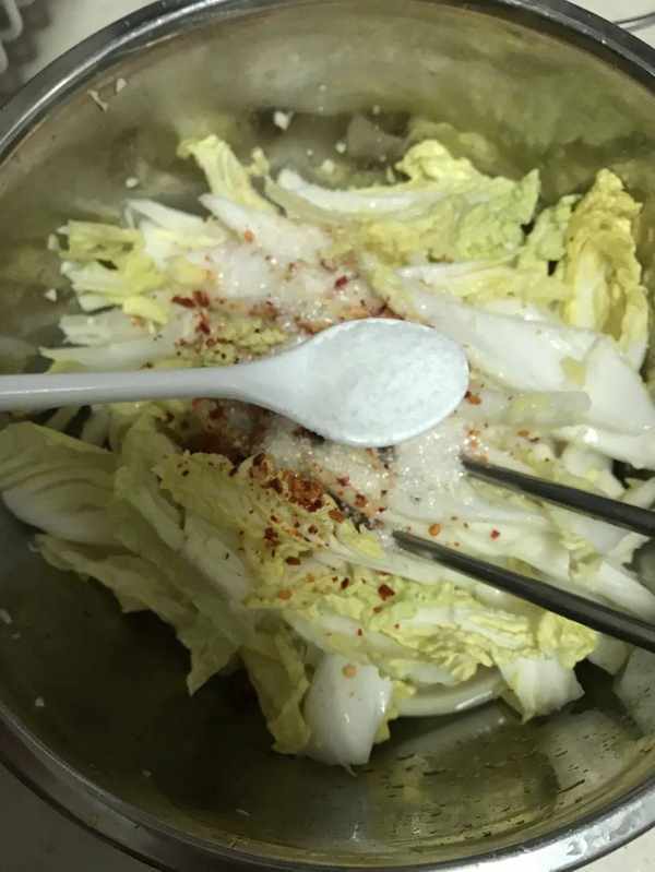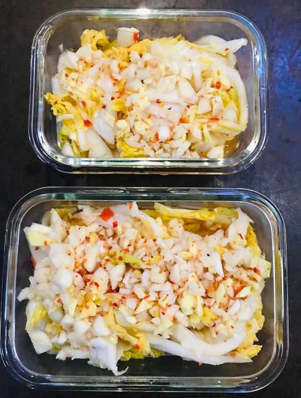 一顆大白菜可以做2小盒,酸甜口,白糖和白醋的反應真的很贊,有辣味,辣味主要來自大蒜和生薑。