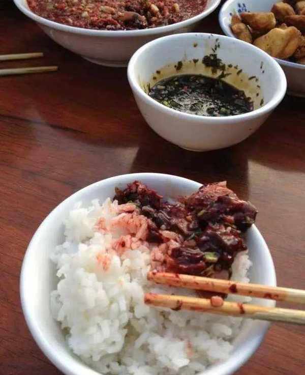 用從山上砍來的橄欖樹做原料的涼拌豬肉“橄欖生”,最有特色的是用新鮮生豬血拌制的稱為“白旺”的這道菜。瞧他們的吃法便可看出其味美無比。想挑戰這菜嗎?歡迎你來我的傢鄉做客!