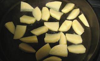 土豆切小塊,平底鍋放橄欖油煎制土豆。