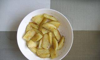土豆煎至金黃色撒少量鹽和黑胡椒盛出備用。