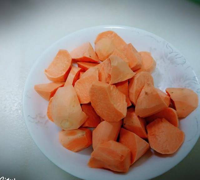 第1步、地瓜去皮切塊。