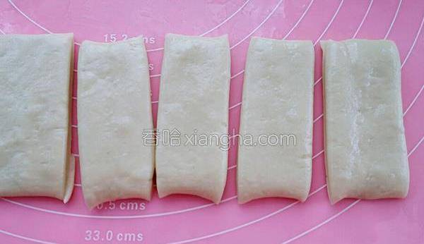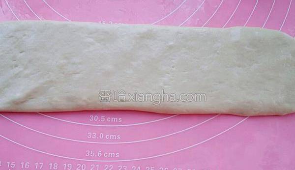 7.揉成圓柱形,用手拍扁成片狀,如果太黏手可以塗抹適量的食用油防粘。