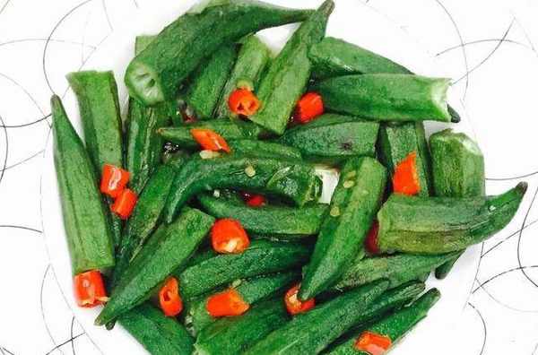 泰椒炒秋葵:秋葵洗凈去蒂,泰椒切段,也可切成細圈,熱鍋冷油,大火,油溫升至6成熱時下秋葵,翻炒半分鐘,下泰椒,翻炒,炒至入味,不加蓋。若秋葵量大,可加一盞水翻炒,加鹽少許,翻炒裝盤,沒吃過可以嘗嘗看。