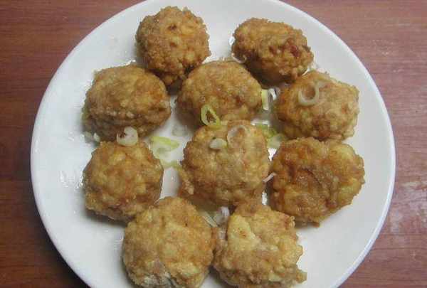 豆腐丸子:蔥薑切末備用,豆腐用勺子壓成末。把肉和壓好的豆腐攪拌在一起,肉和豆腐的比例1:2,或根據自己的口味放。然後把切好的蔥薑、鹽、味精都放入一起攪拌。把和好的丸子表面裹一層芡粉,不要太厚,但要均勻。油五成熱就下鍋炸,用小火炸,炸至金黃色就可以瞭。味道超棒的豆腐丸子你也來試一下吧!
