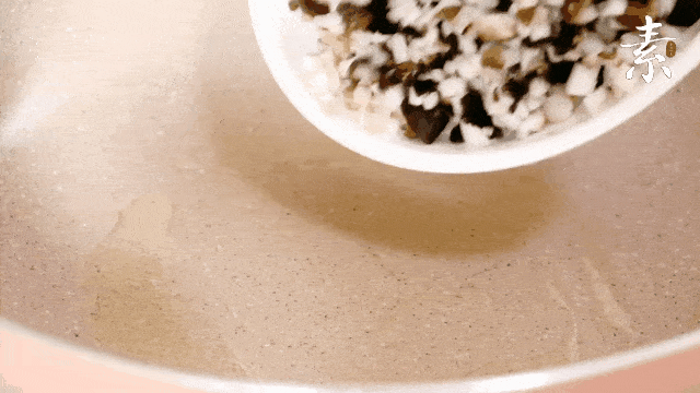 3.鍋裡加油,放入食材翻炒3分鐘。加入十三香,糖,生抽,素蠔油,拌勻收幹汁,即成包子餡,放涼備用。
