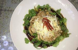 用料:豬腰子,蒸魚豉油,香菜,料酒,白酒,大蔥,蒜末,辣椒絲,水,油