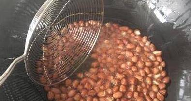 第一步,在鍋中放入適量的油,然後冷油下入花生。