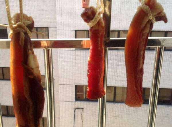 (3)約醃制3-4天,取出,掛起來晾幹;