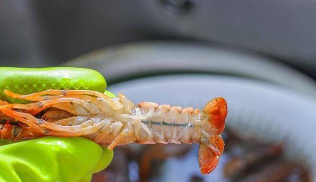 1、 小龍蝦需要一個一個的清理,抽取蝦線時, 從尾部中間的位置輕輕扭動一下就抽出來瞭。