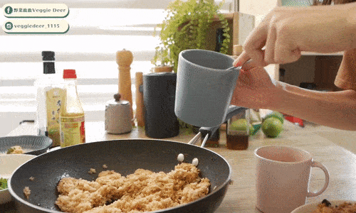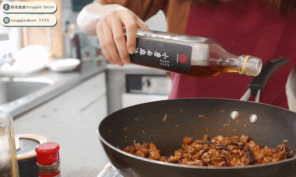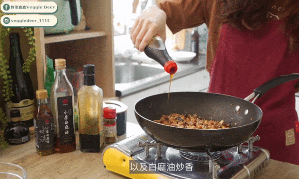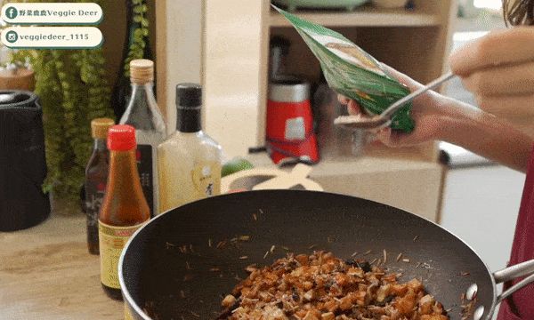 加入醬油、素蠔油、糖、胡椒粉、五香粉等調料一起調味
