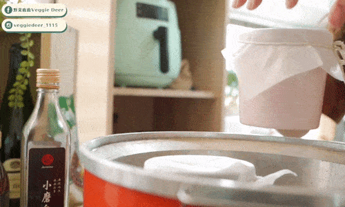 蓋上紗佈,用棉繩紮緊,放入電鍋蒸煮