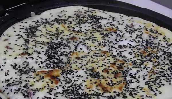 加入葡萄幹,給它合攪合排排氣,攪拌好瞭以後再醒10分鐘,店名稱遇到好瞭,刷上一點薄油,塗抹均勻以後撒上黑芝麻,當時的薄一點比較好吃,蓋上蓋子再給他繞著一會上蓋我刷瞭一點油,如果是單面的鍋中間接地翻一次面。