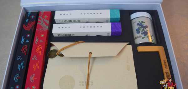 於是呢,我就把這些東西逐個拿出來,沒想到東西還不少,上面有1盒紅豆薏仁丸、有1盒黑芝麻丸、有1盒三色藜麥米、有1盒墨江紫糯米、有1罐黑枸杞、有1個類似羊皮卷包著的筆記本,開始還以為是武功秘籍,原來是菜譜,還有一個木架子,開始不知道是幹啥的,然後拿開之後發現還有一疊日歷,卡在木架子上剛剛好!