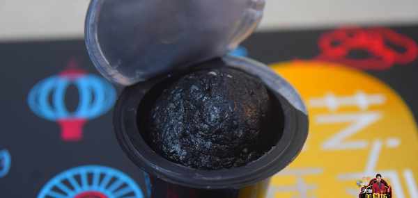 接著我把黑芝麻丸也打開,這貨也太黑瞭吧,我感覺關瞭燈絕對看不到它瞭,估計是從非洲偷渡過來的,不過聞起來有很香的黑芝麻味,估計是炒過的黑芝麻做的,先用舌頭舔一下,哎媽呀,也是甜的,直接放到嘴裡嚼著吃,芝麻香味融合甜味,吃起來還不錯!
