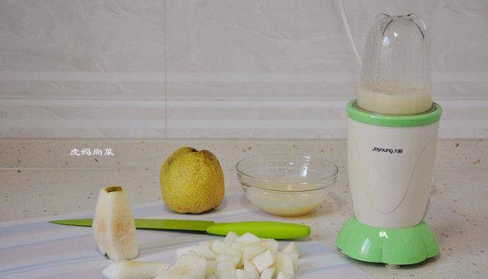 1.梨洗凈去皮,切成小塊,放料理機中打成粘稠的汁。