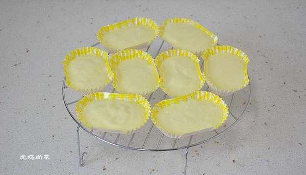 5.將混合糊倒入小蛋糕紙杯中,八分滿即可。留出紙杯邊緣,小蛋糕在烤制的過程中會膨發。