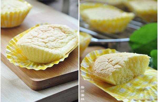 用梨汁做的蛋糕,極易蓬發成功,顏色嫩嫩的,口感也超軟綿清新。