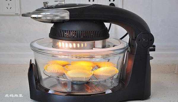 6.將小紙杯移至空氣炸鍋中的旋轉烤架上,蓋上蓋子,設置150度,20分鐘,開始烘烤。中途看到小蛋糕會慢慢膨發起,然後烤制表面顏色微黃即可。