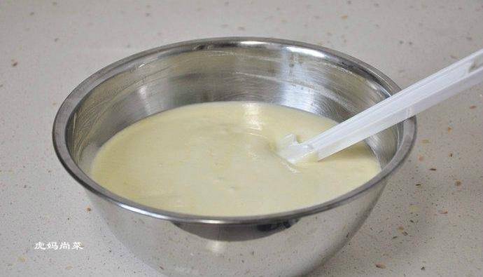 原料:蛋黃4個,白糖20克,梨汁70克,色拉油35克,低筋面粉80克。
