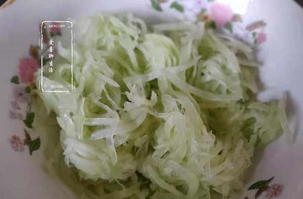 第三步 攥幹水分,做好這些,萵筍中也殺出瞭不少水分,把它用力攥幹,放入另一個幹凈的碗中。
