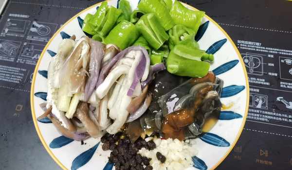 食材準備:小茄子3根,螺絲椒3個,皮蛋2個,蒜末,豆鼓適量。