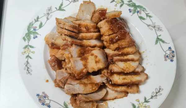 食材準備:醃制好的五花肉一塊(提前一天用叉燒醬,生抽,老抽,白糖,蠔油,生粉醃制,放冰箱冷藏備用)
