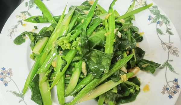 做法:熱鍋熱油,下薑蒜末炒香,放入芥蘭,翻炒至熟,加蠔油,鹽調味即可。