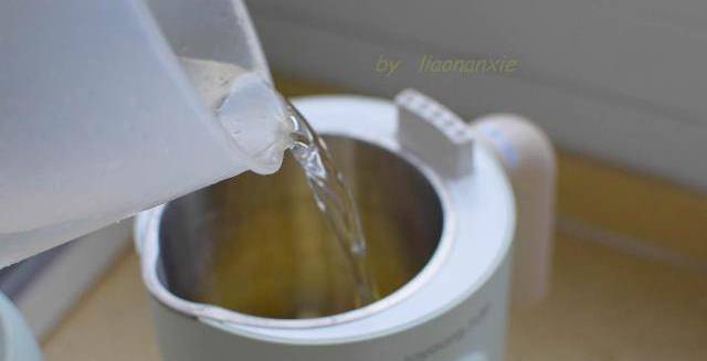 加上600ml的水,這是小容量的豆漿機,大容量的機器的話,根據容量調整材料。