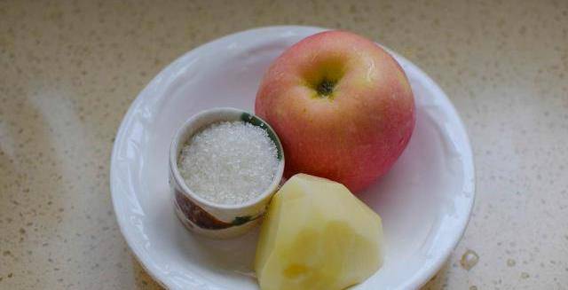 準備材料,一個蘋果,一半蘋果大土豆,糖適量,水600毫升。