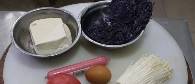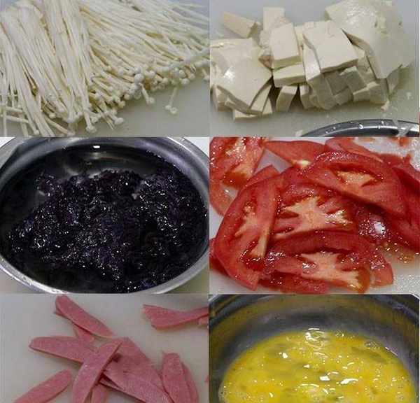 需要準備哪些食材呢?金針菇、豆腐、紫菜、番茄、雞蛋、火腿腸等。