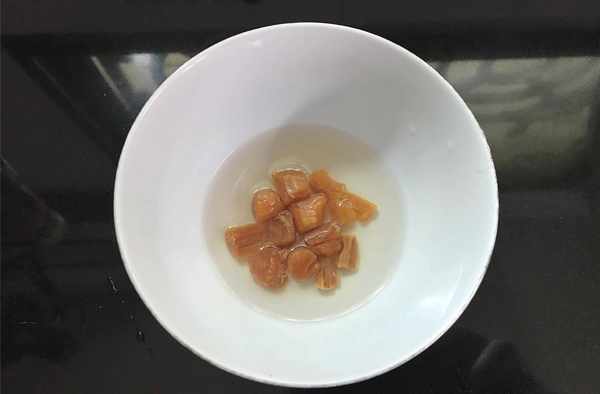 2、幹貝提前用溫水加少許料酒浸泡,這樣可以去除它的腥味。