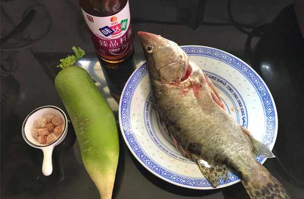 【材料】:桂魚1條,蘿卜1個,幹貝10克,鹽適量,料酒1大勺,油適量,蔥花適量,老薑1小塊