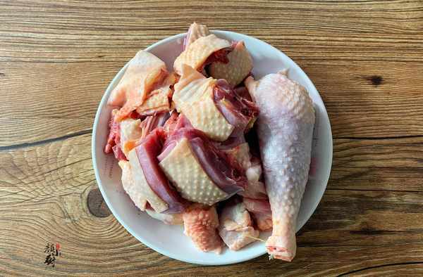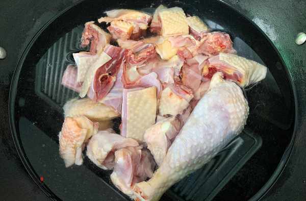 步驟一:把雞肉清新幹凈,砍成大小一致的小塊備用。