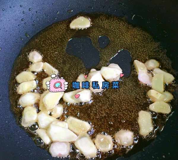 炒鍋燒熱,倒入麻油,入沙薑翻炒出香氣。