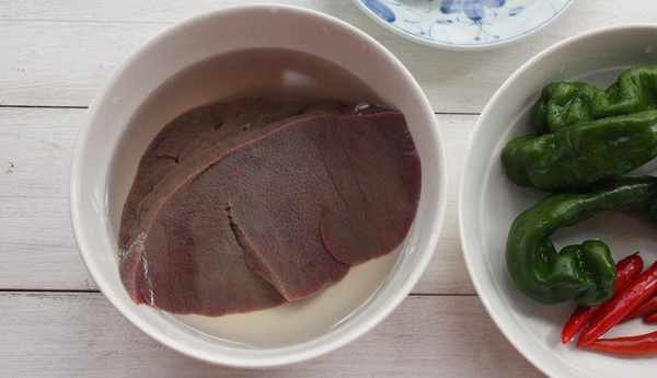 我們先提前把豬肝浸泡在清水裡,泡出肝臟裡的血水後多換幾次水。記住瞭,是需要換3-4次水,這樣能更好的把肝臟裡的臟東西浸泡出來,食用的時候就不用擔心啦。