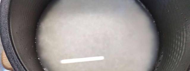 4、電飯鍋裡放1杯半米,淘洗幹凈,接入超過手指1關節的水量。