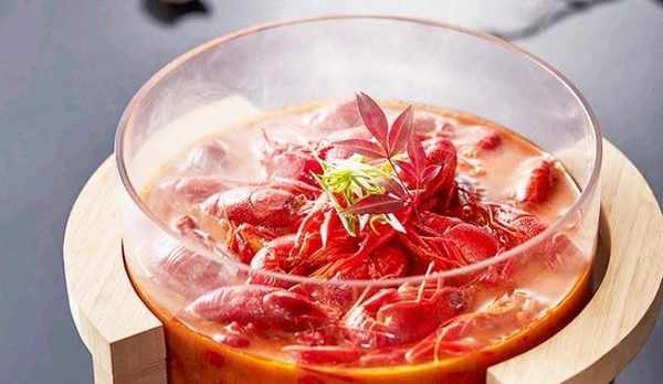 小龍蝦洗凈開背瀝幹水分,用7成油溫炸10秒撈出,放入清補涼調味蝦湯燜煮2分鐘後離火浸泡30分鐘