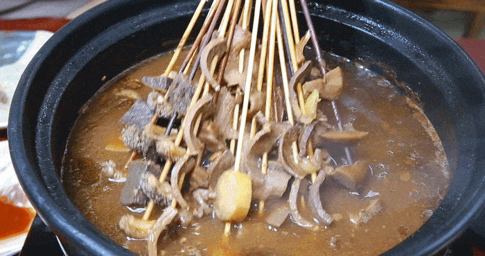 最讓廣東人牽腸掛肚的,就是那一份燉的軟糯可口的牛雜瞭,霞山這傢『小吃貨串串』,店內的牛雜采用的是自選串串的設計!