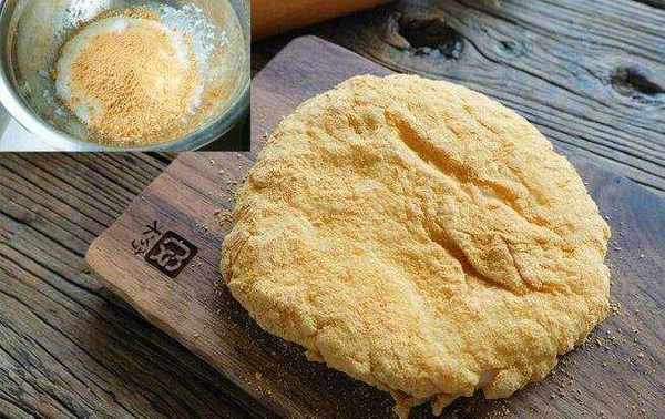 4:接下來兩面都撒上黃豆粉,這樣不會沾手