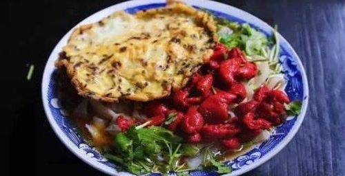 面條是自己用面和水經過三醒三揉之後搟平,然後用刀分條,然後拉長,放到熱水裡煮熟,撈起,上面放上豬大腸,紅燒五花肉,當地人看吃的咸菜幹,真的是鮮香無比,留傳四代,不僅僅是不份堅守,更是一種信賴。