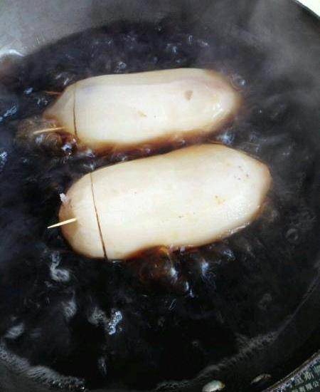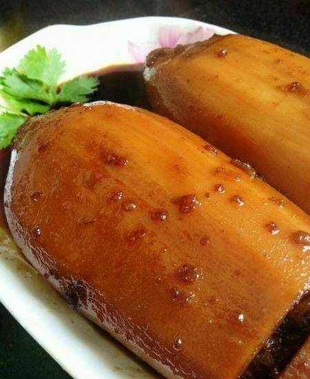 中間可能需要加一次水,時間差不多就可以收汁瞭,別收太幹,留點澆藕上,顏色更漂亮一些